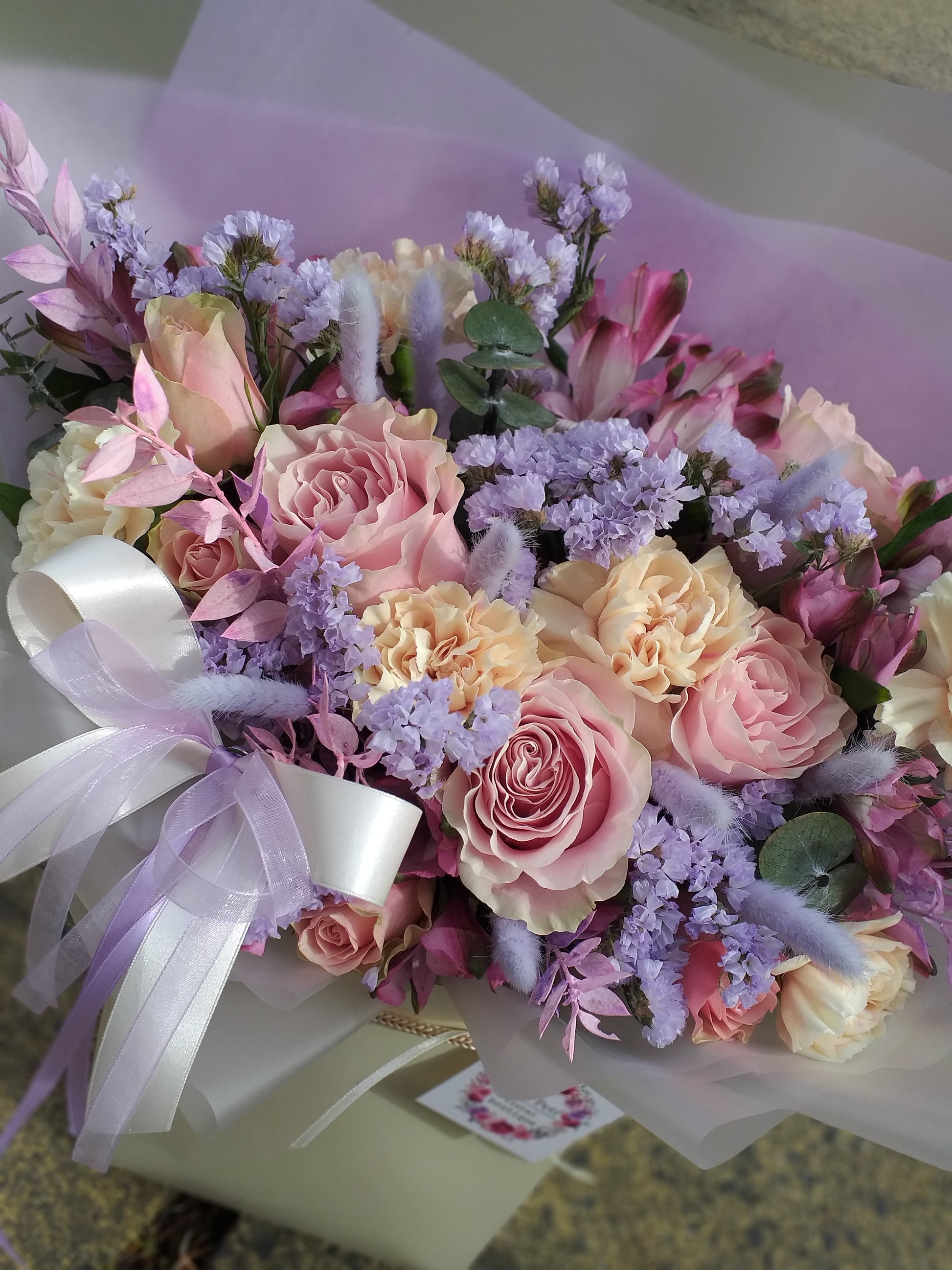 Dear Customers, we are very happy to create these beautiful Lilac, Pink & Peach seasonal fresh flower bouquets for your special occasions!